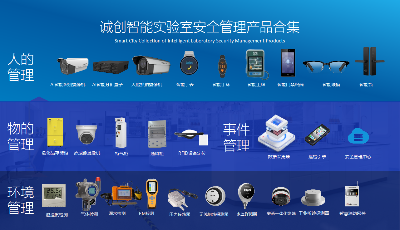 通過傳感設備對實驗室所有房間進行實時監測,保證實驗環境正常穩定,并提供多種手段,及時給予管理人員警告通知