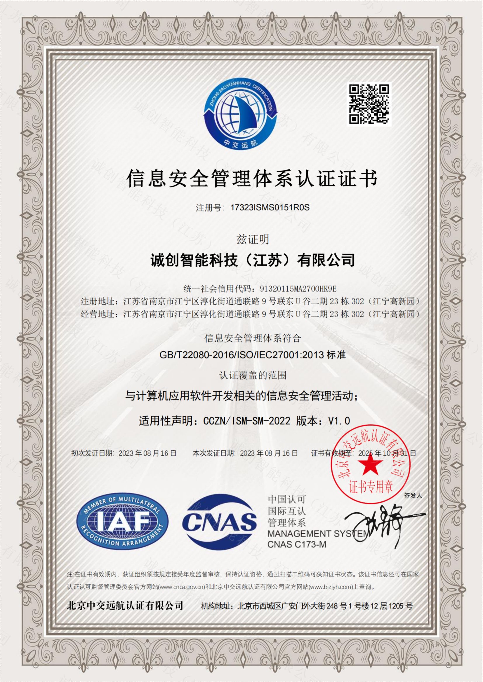 ISO27001信息安全管理認(rèn)證證書