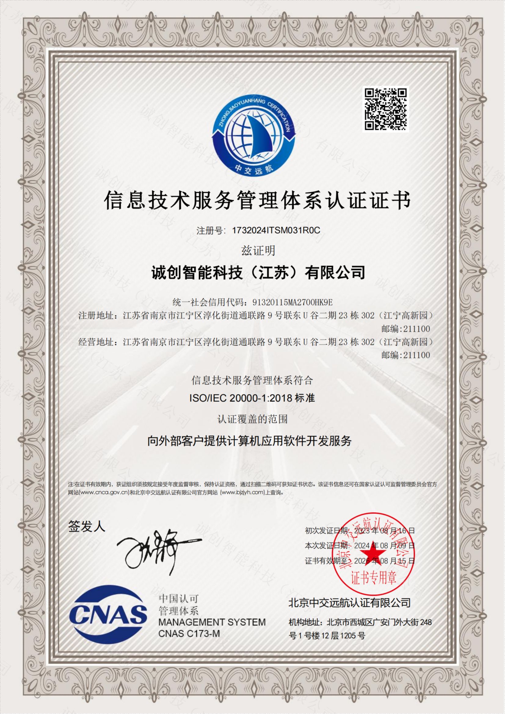 ISO20000信息技術(shù)服務(wù)管理體系證書
