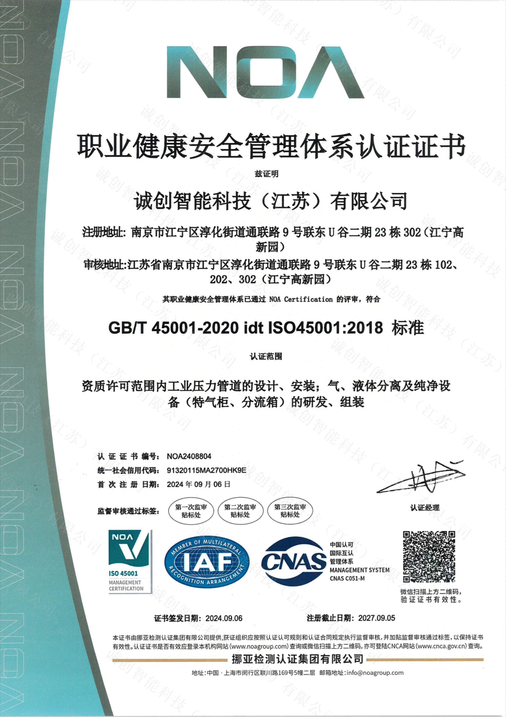ISO45001職業(yè)健康安全管理體系證書