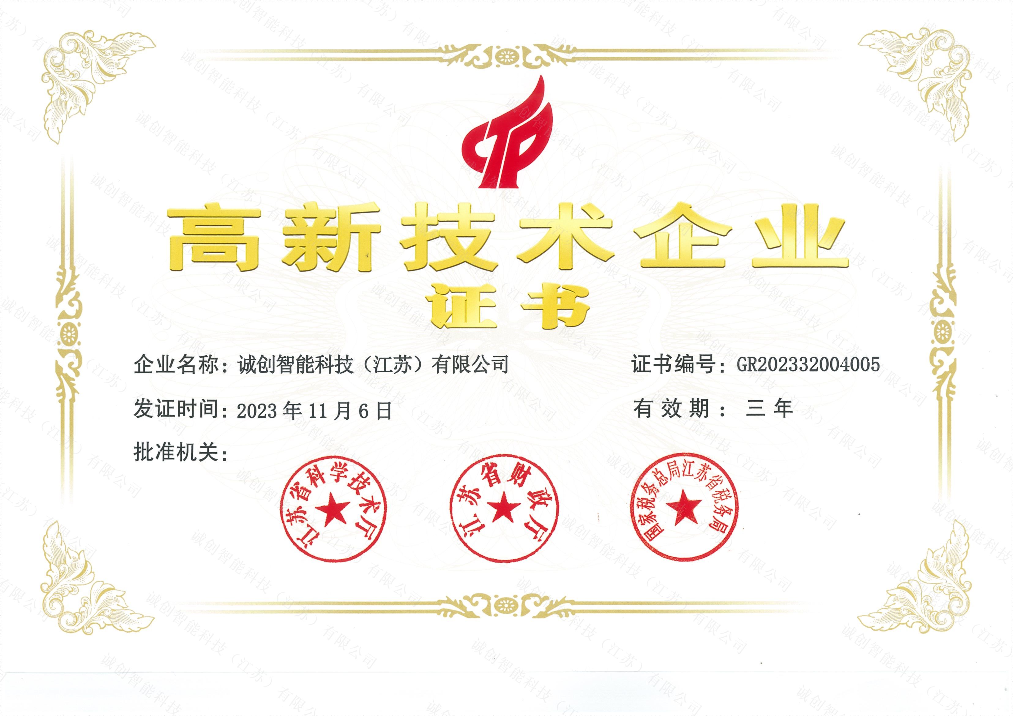 高新技術(shù)企業(yè)證書